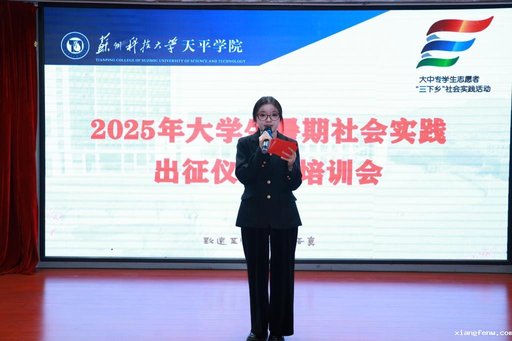 6月18日下午,我院2025年“挺膺担当启新程,青春奉献著华章”暑期社会实践出征仪式暨培训会在图书馆报告厅举行。团委老师、各二级学院团总支书记、副书记以及各立项团队代表参加出征仪式。活动由团委学生干部黄萌主持。