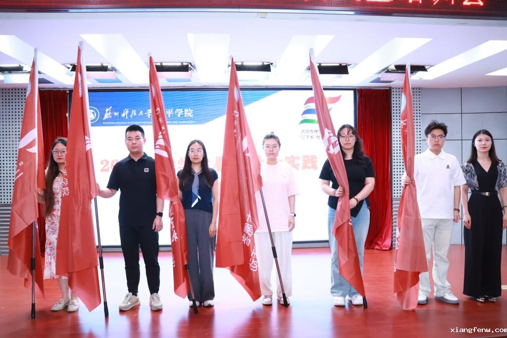 会上,团委刘梦平老师宣读了《关于公布我院2025年暑期社会实践立项团队的通知》文件,并从安全保障、质量保障以及宣传保障三个层面就做好2025年暑期社会实践做了实践动员。同时为各二级学院立项团队代表授旗。