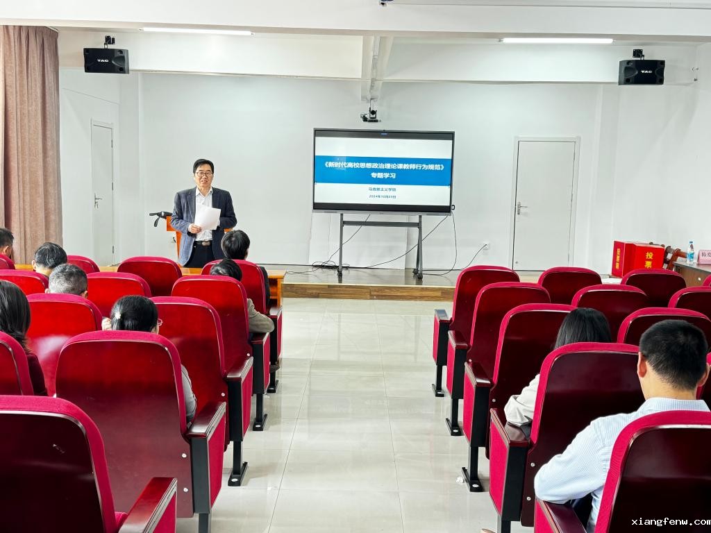 为深入学习贯彻习近平新时代中国特色社会主义思想和党的二十大精神、党的二十届三中全会精神,大力弘扬教育家精神、高标准推动高校思政课教师师德师风建设,马克思主义学院于2024年10月23日下午在6教201召开《新时代高校思想政治理论课教师行为规范和准则》专题学习会。马克思主义学院党委隋爱红书记主持会议。